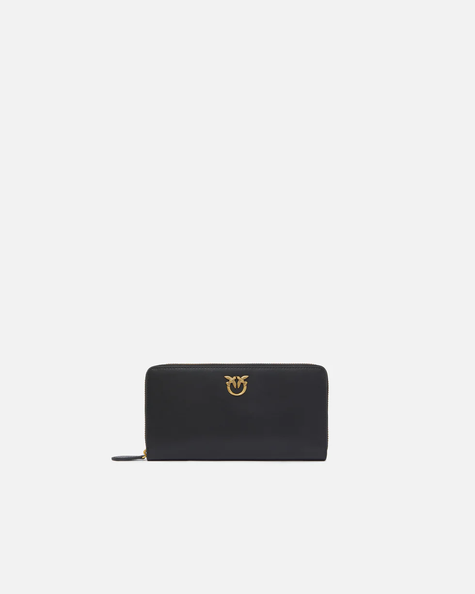 Πορτοφόλι zip-around από μαλακό δέρμα με πολύ απαλή υφή και λογότυπο Love Birds Diamond Cut πάνω σε δερμάτινη βάση. Το εσωτερικό είναι φοδραρισμένο με polycotton και είναι χωρισμένο σε τέσσερις χώρους, από τους οποίους ο ένας κλείνει με φερμουάρ και οι δύο διαθέτουν θήκες για πιστωτικές κάρτες.