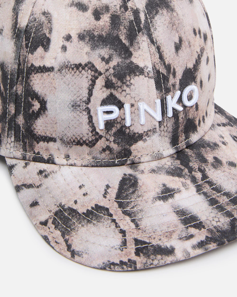 Καπέλο μπέιζμπολ με γείσο, κατασκευασμένο από καθαρό βαμβακερό ύφασμα με ένα εντυπωσιακό μοτίβο φιδιού σε όλη την επιφάνεια. Το αξεσουάρ διαθέτει ρυθμιζόμενο λουράκι με κλείσιμο με velcro πίσω και την απαραίτητη διακοσμητική πινελιά: το ανάγλυφο λογότυπο PINKO, κεντημένο σε διαφορετικό χρώμα μπροστά. Ένα δυναμικό και σύγχρονο αξεσουάρ, που κερδίζει με την πρώτη ματιά τις λάτρεις του animal print και όχι μόνο. – BALLETTO BASEBALL CAP.