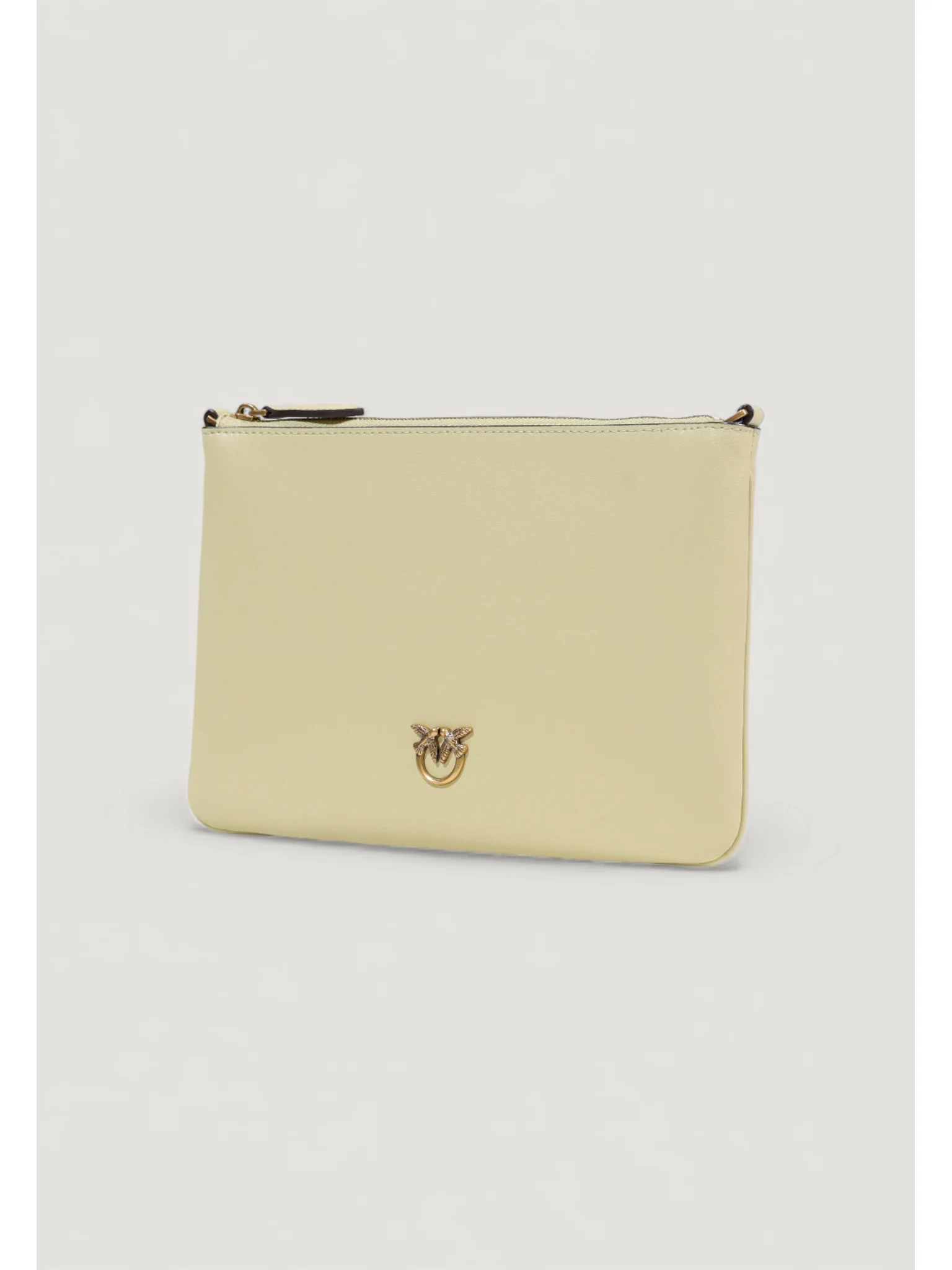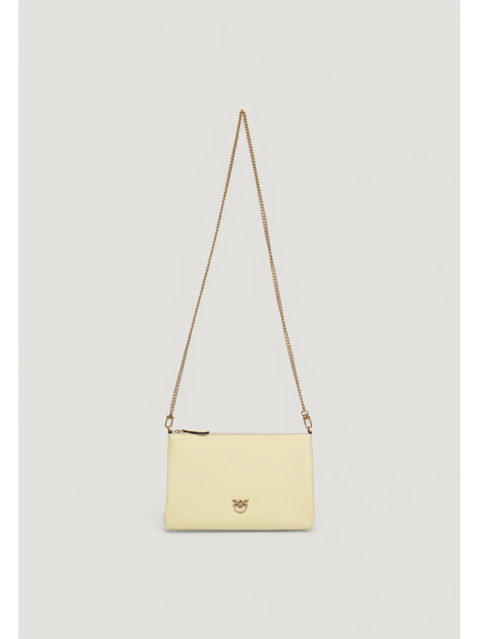Επίπεδη τσάντα ώμου από μαλακό, μεταξένιο δέρμα. Λογότυπο Love Birds Diamond Cut. Εσωτερικό φοδραρισμένο με polycotton και αποσπόμενο λουράκι ώμου από λεπτή αλυσίδα. Κλείσιμο με φερμουάρ.