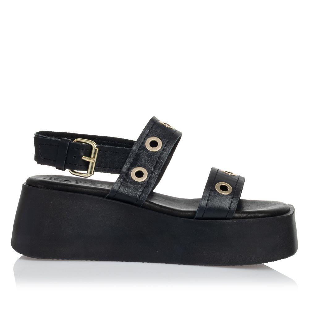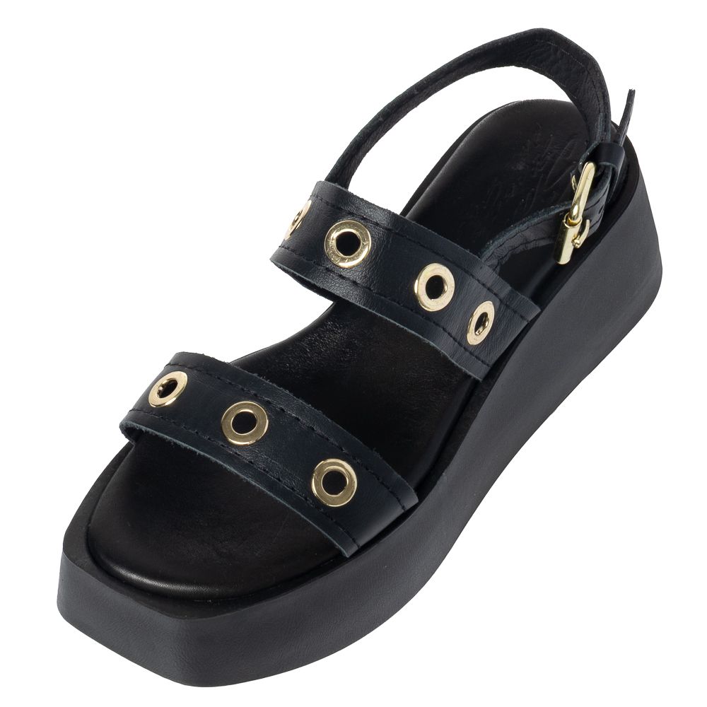 Πέλμα ύψους 5 εκατοστών. Πατάκι δερμάτινο. Χρώμα μαύρο.